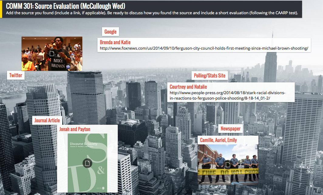 Classroom uses include having students curate information found online, group projects, categorize information, brainstorm topics, evaluate sources. See an example of Padlet here.