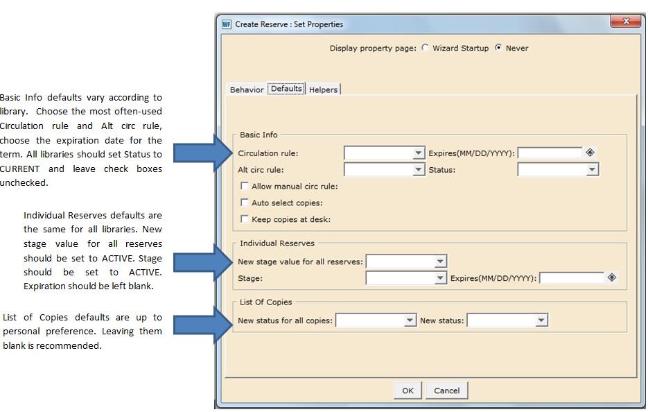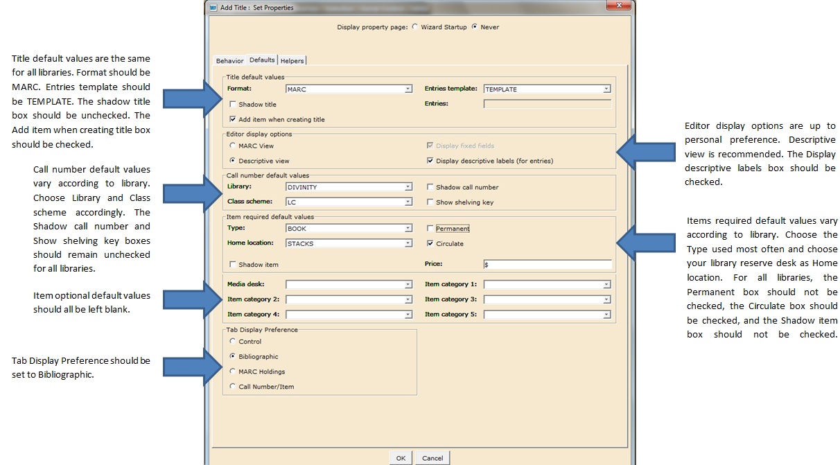 Properties can be preset to automatically populate fields with default values. Default properties must be set at each workstation and do not carry over with a personal login.