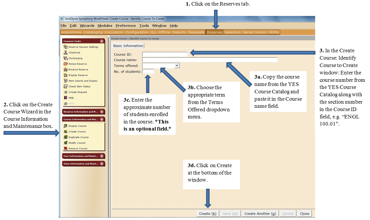 Before creating a course record, check to see if one already exists using the Modify Course wizard (under Course Information and Maintenance).